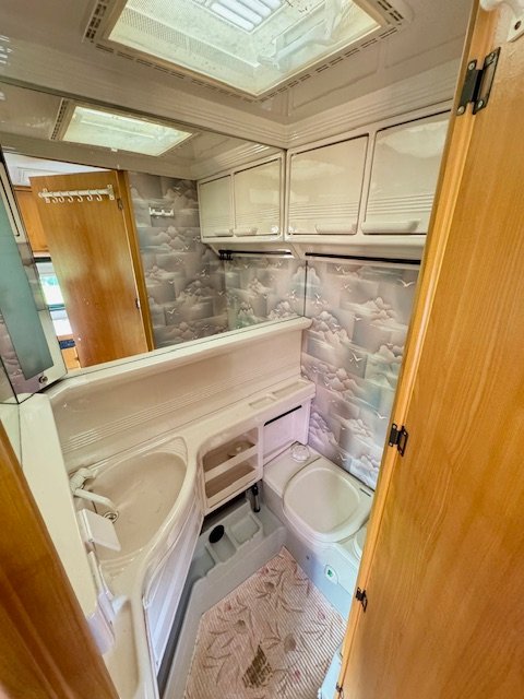 Vannasistaba ar dušu un Thedford Porta Potti kasetes tualeti